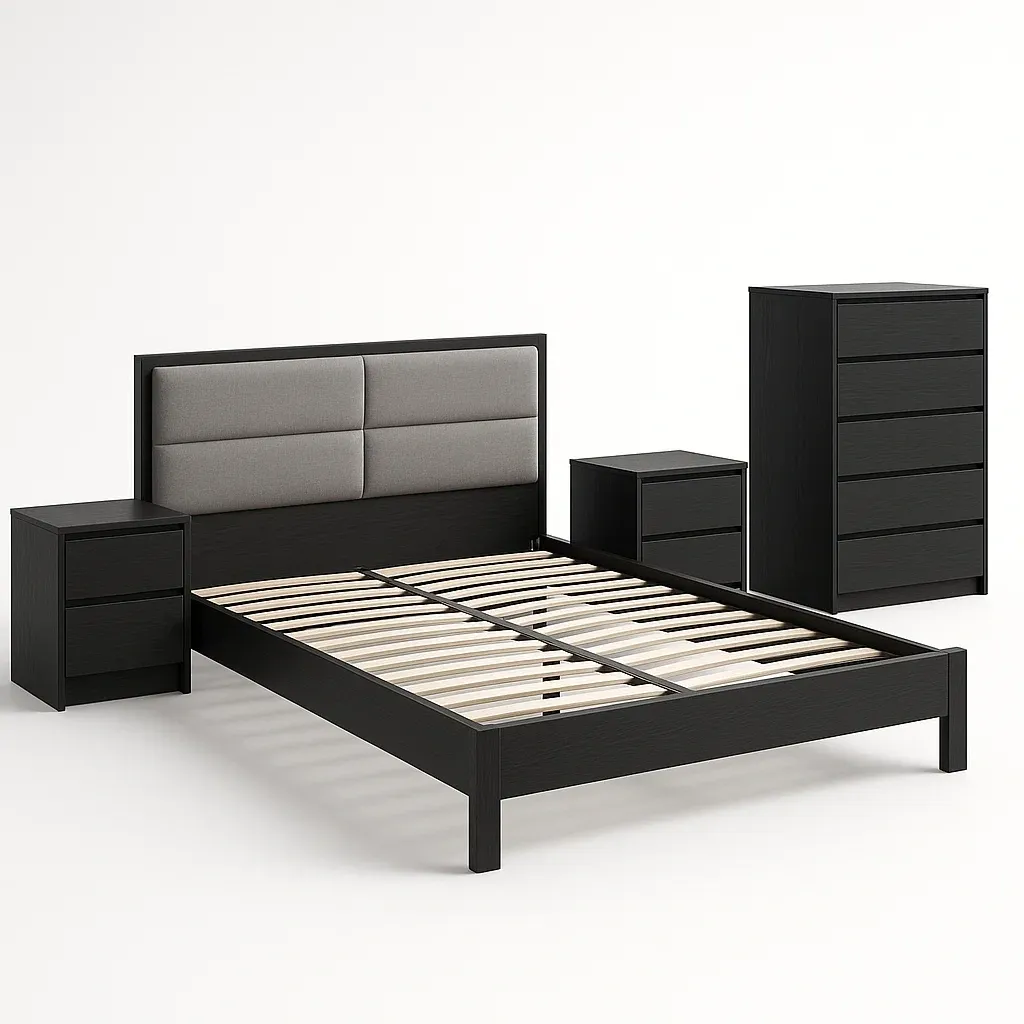 Hörnsoffor svart polyester 3-sits med schäslong
